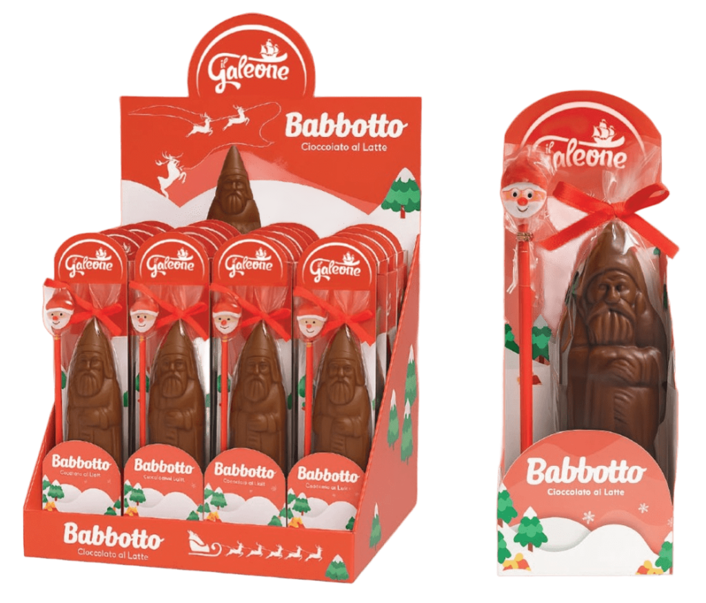 Il tradizionale Babbo Natale in puro cioccolato al latte decorato a mano